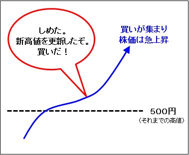 つまり、上がっている銘柄を買って、もっと値上がりしてから売るという戦略です。